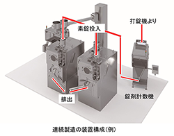 - 錠剤は自動投入/排出され、各工程の終点制御は、PATツールによって自動化。