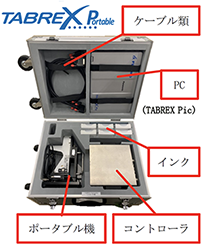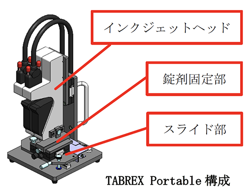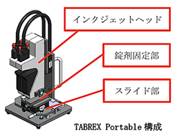 - 生産機(TABREX Rev.)に近い印刷サンプルを取得できるようにするため、共通のインクカートリッジ、インクジェット印刷装置を採用。