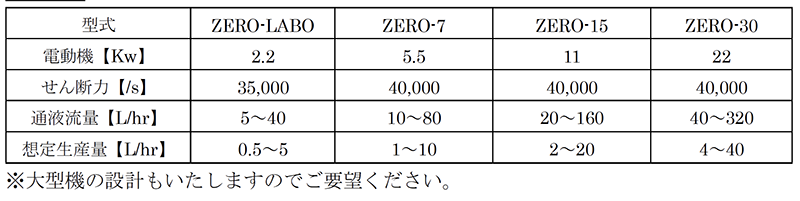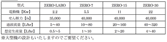 【装置の特徴】- ローター回転数の変更によりスラリーに与えるせん断力を調整する事が可能で、スラリー物性と処理目的に合わせた最適なせん断力を選択可能