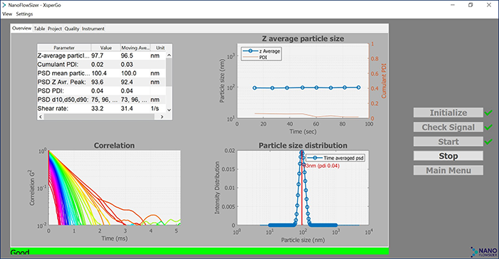- 測定所要時間は約10秒、ナノ粒子の粒径を素早く捉えリアルタイムでモニタリング。