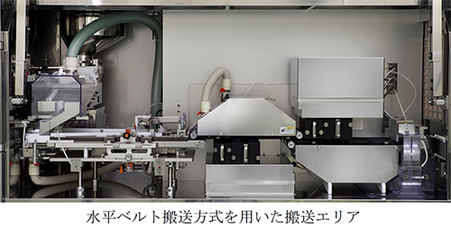 - 錠剤にストレスを与えない水平ベルト搬送方式