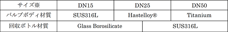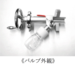 【装置の特徴】- 部品点数の少ないシンプルな構成(バルブボディ、ピストンバルブ、回収容器、バルブ開閉ハンドル)。