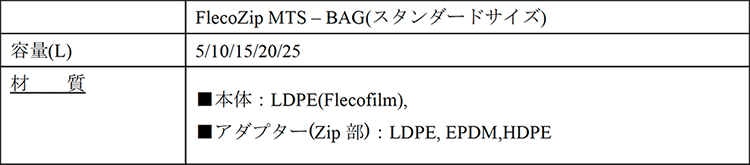 - FDA/EMAに適応した素材でバッグサイズは5~25Lまで豊富なラインナップがあり(他サイズも数量によって対応可能)。