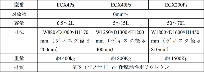 - SUS仕様とウレタンライニング仕様があり、医薬製剤や食品材料の処理、耐摩耗性を要するセラミック材料の処理にも適用可能。
