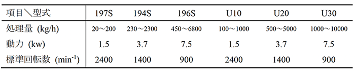 - 豊富な種類のスクリーンとインペラ、回転数による無数の条件設定が可能。