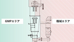 - GMPエリアと装置周辺機器の機械エリアを完全に分離する部屋設計まで対応。